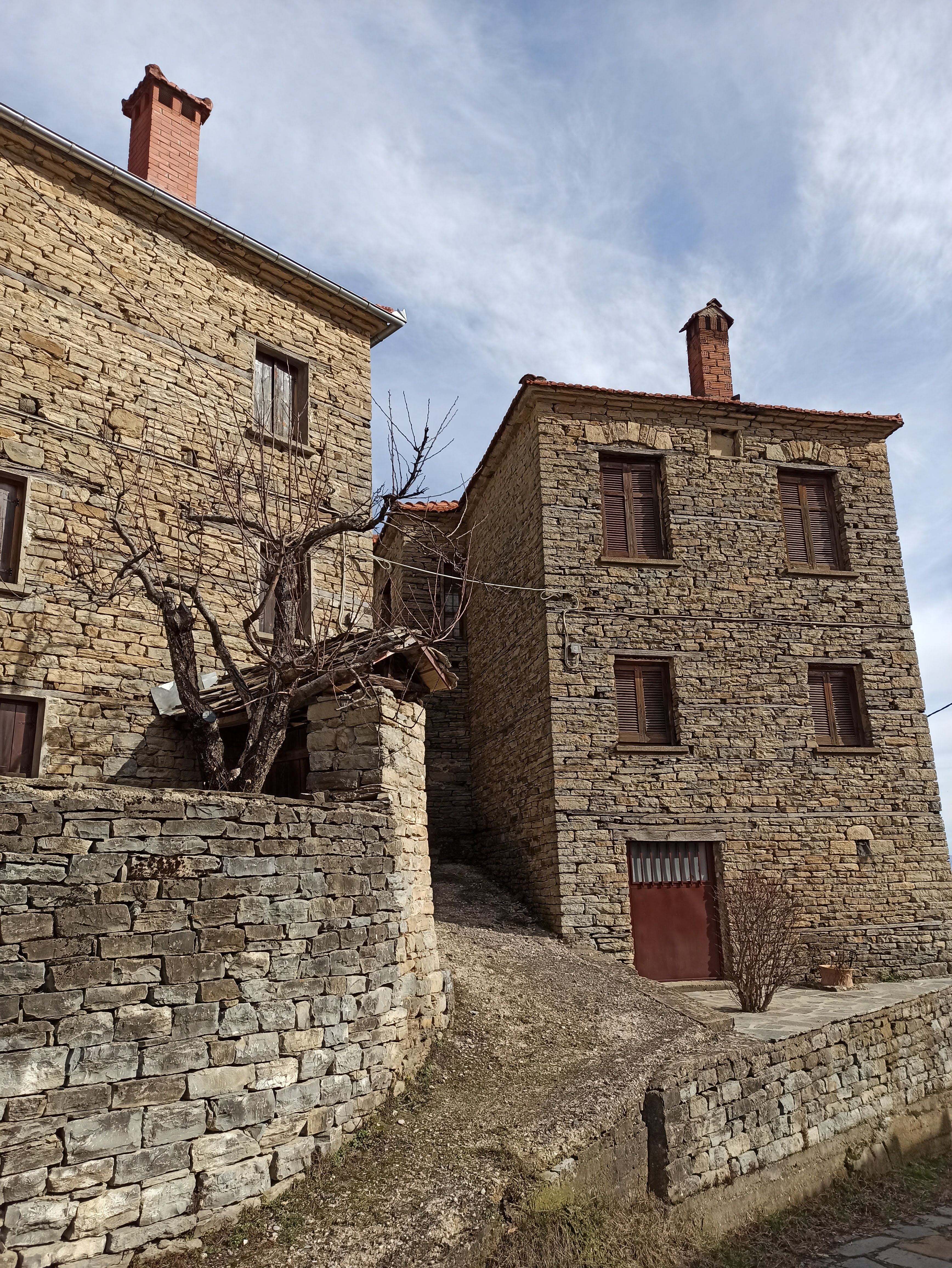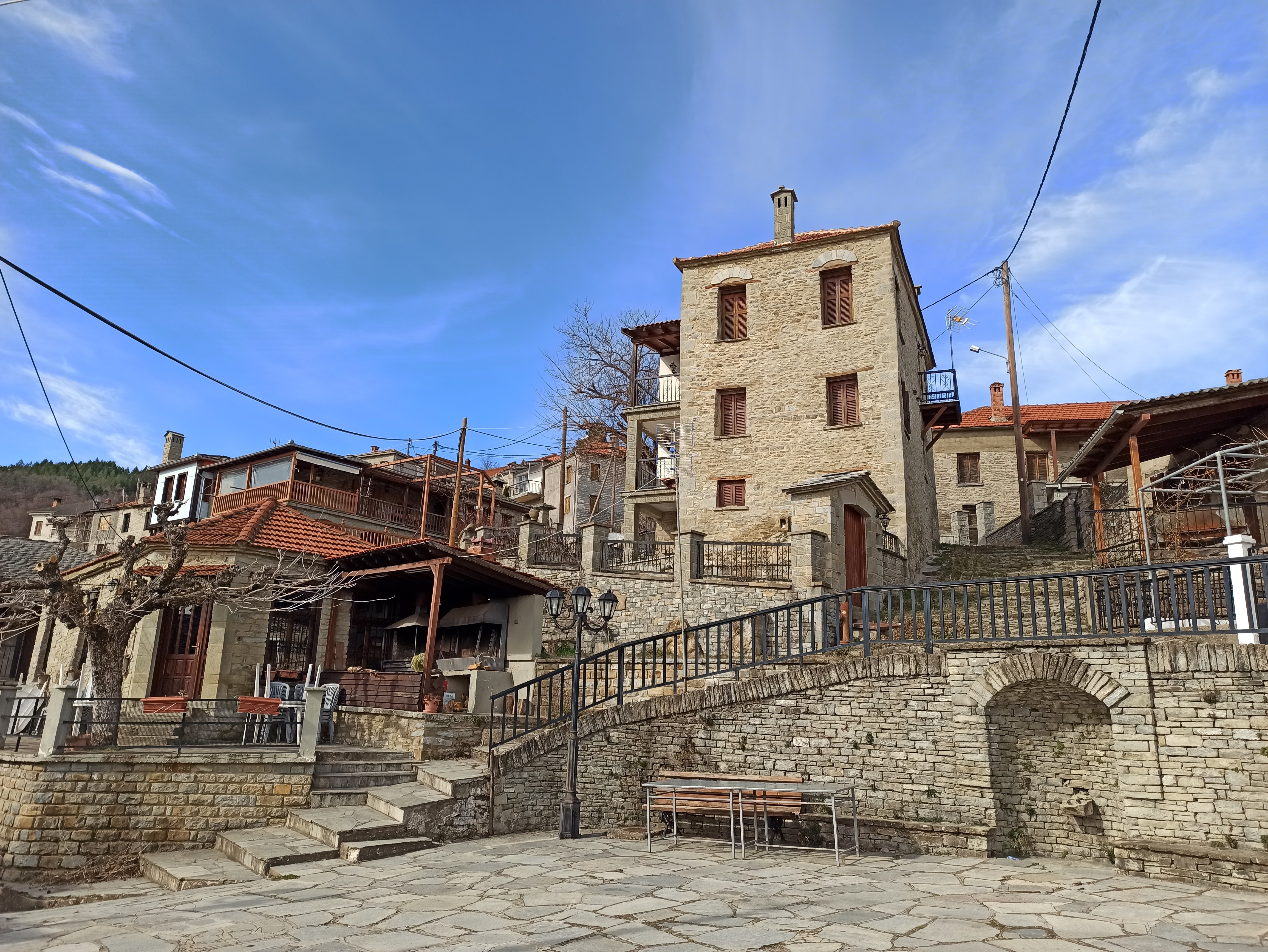 Η πέτρα κυριαρχεί στο σκηνικό. Σπίτια αρχοντικά, χτισμένα με παραδοσιακό τρόπο και εντυπωσιακούς αυλόγυρους. Καλντερίμια που διασχίζουν το χωριό και σου δημιουργούν την επιθυμία να περπατήσεις παντού και μια απίστευτη θέα προς τις κορυφές των βουνών των όμορων νομών.