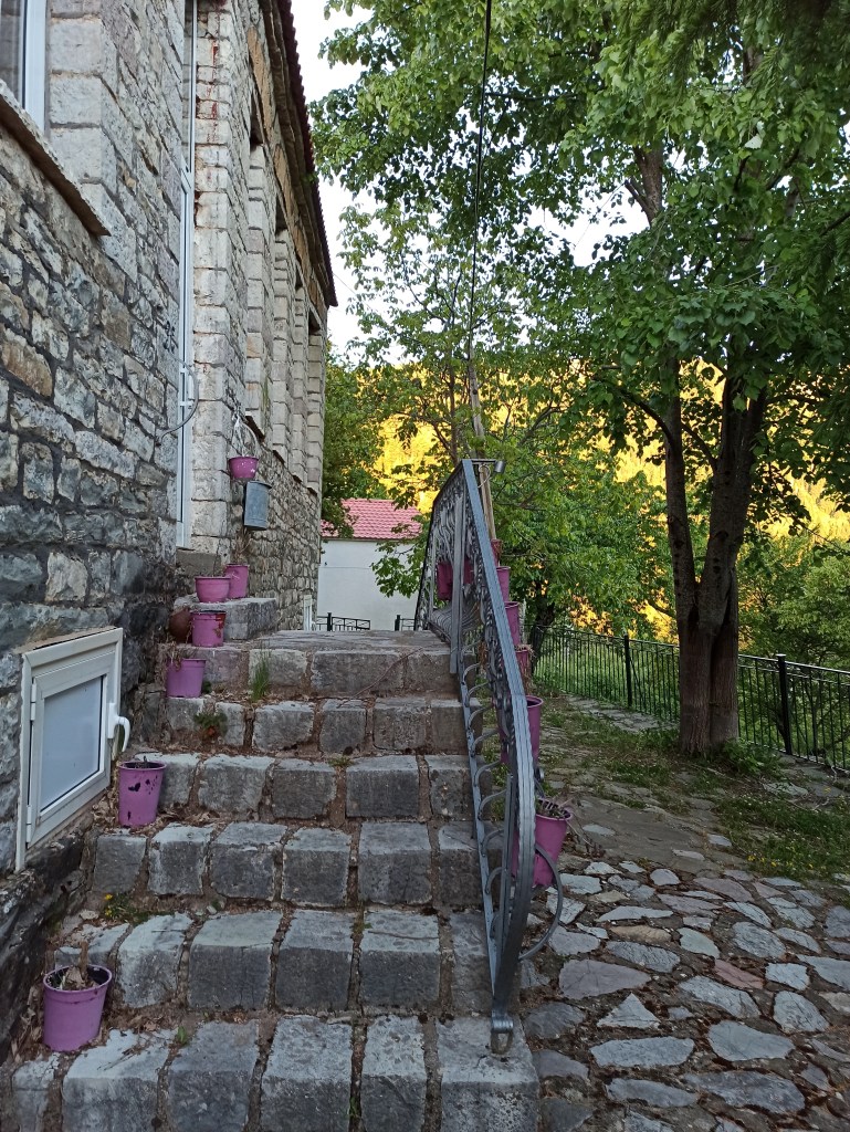 Αφήνοντας τον κεντρικό δρόμο ανηφορίζεις για την εκκλησία του Αγίου Χαράλαμπου. Στο ίδιο προαύλιο υπάρχει κ το σχολείο του χωριού. Το μεράκι ενός κατοίκου έχει γεμίσει με γλάστρες τον περίβολο του ναου καθώς κ τα σκαλιά του σχολείου. Χρώματα που δεν θα περίμενα να συναντήσω σε ένα τόσο μικρό χωριό κ πραγματικά ήταν η ευχάριστη έκπληξη.