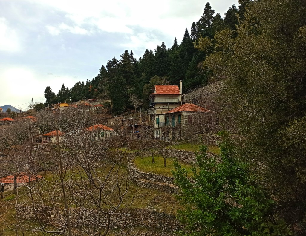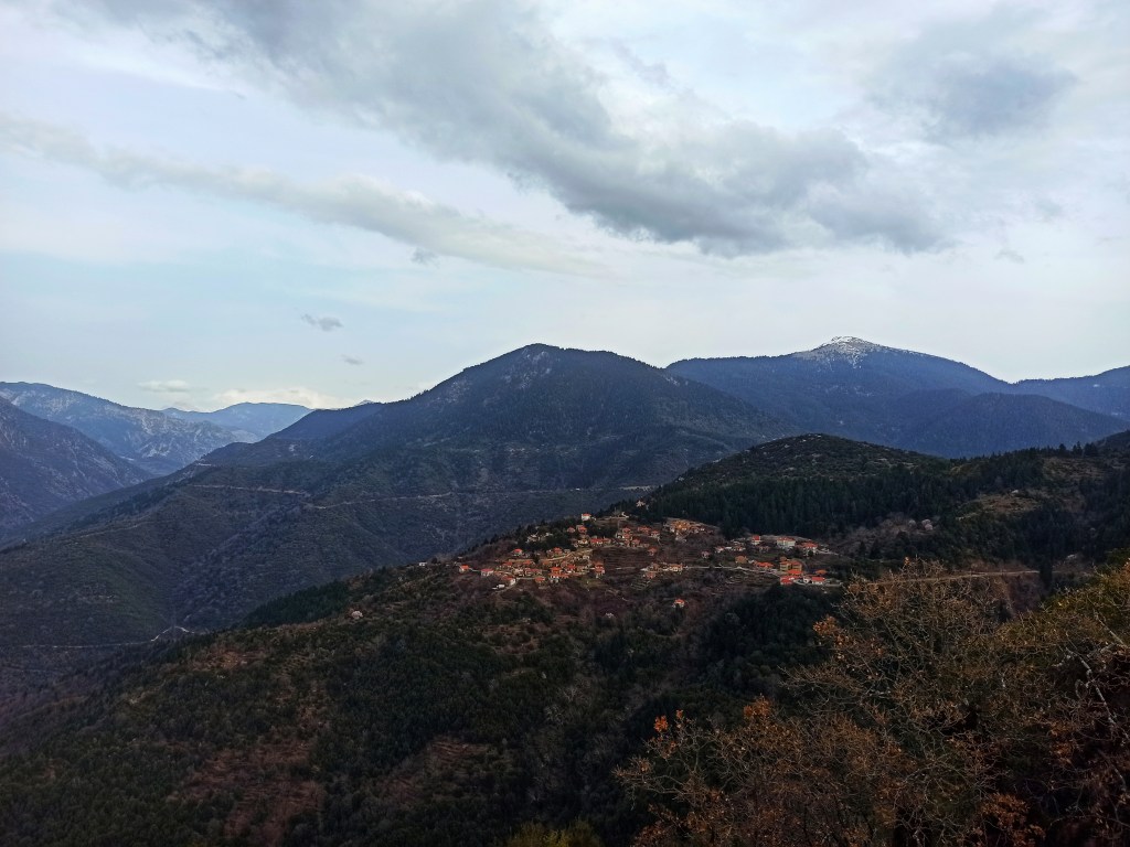 Είναι χτισμένη ανάμεσα σε ορεινούς όγκους που κάνουν το τοπίο επιβλητικό. Η θέα προς πάσα κατεύθυνση σε γοητεύει. Κορυφές, λαγκάδια και τρεχουμενα νερά συνθέτουν την εικόνα. Ένα μικρό χωριό ανάμεσα σε βλάστηση, με στενά μονοπάτια δρομάκια που δεν τα περπατάς απλά αφήνεσαι να σε οδηγήσουν όπου θέλουν αυτά.